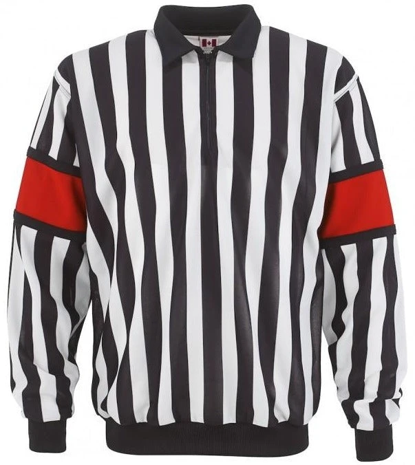 1/2 zip pull over, sewn on orange or red armbands. CCM embroidered logo on back hem